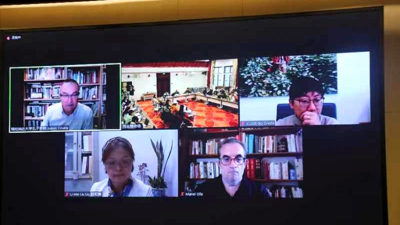 本期论坛的主题是“西语世界的早期汉学研究——从第一部译为西方语言的中国古籍说起”,邀请外国语学院西葡意语系教授赵振江,西班牙庞贝乌·法布拉大学人文学系教授欧洋安(Manel Ollé Rodríguez),淡江大学西班牙语文学系副教授刘莉美,以及墨西哥学院亚非研究中心主任陆昊安(José Antonio Cervera Jiménez),为国内百余名师生及格拉纳达大学孔子学院学生带来了精彩的讲座。